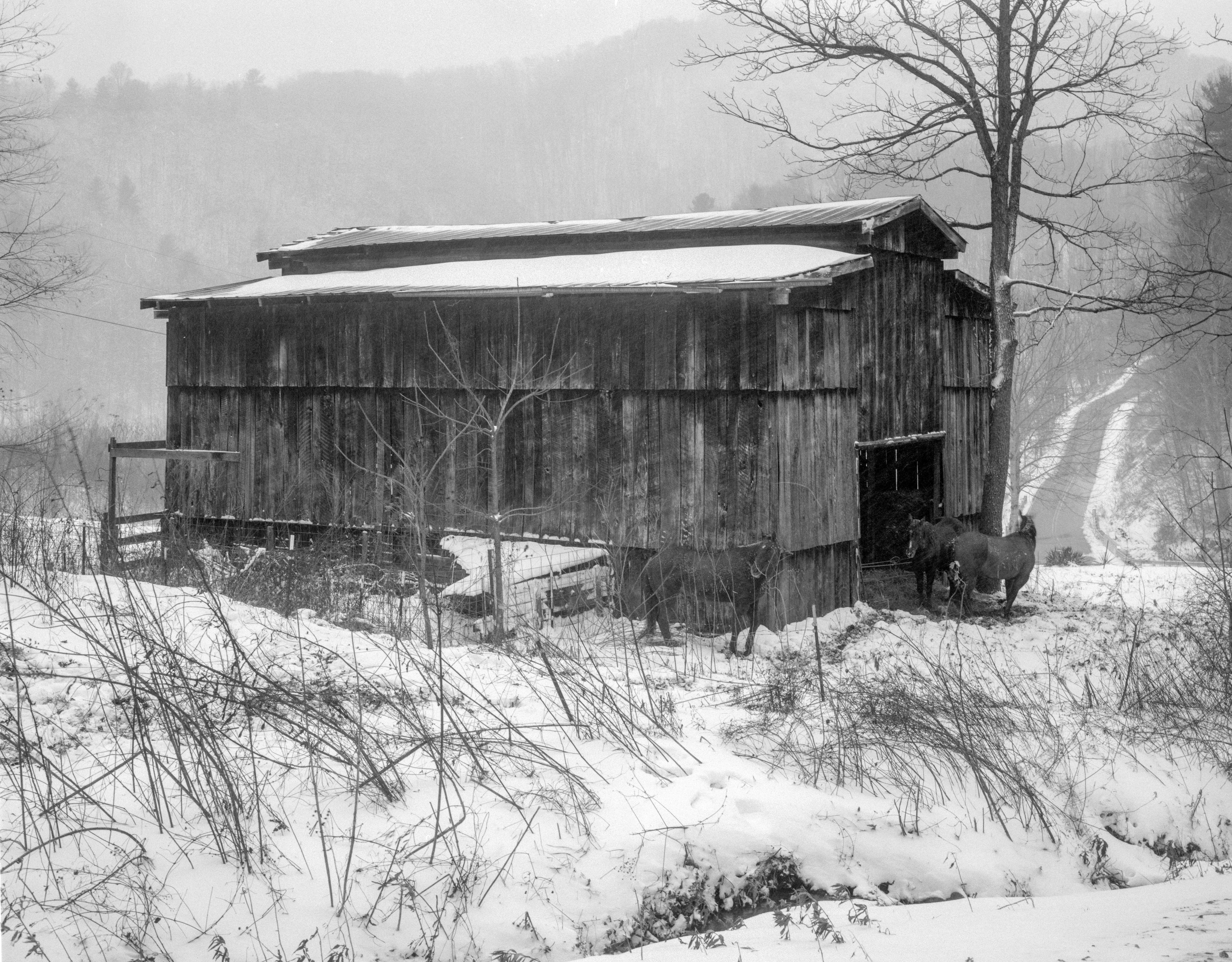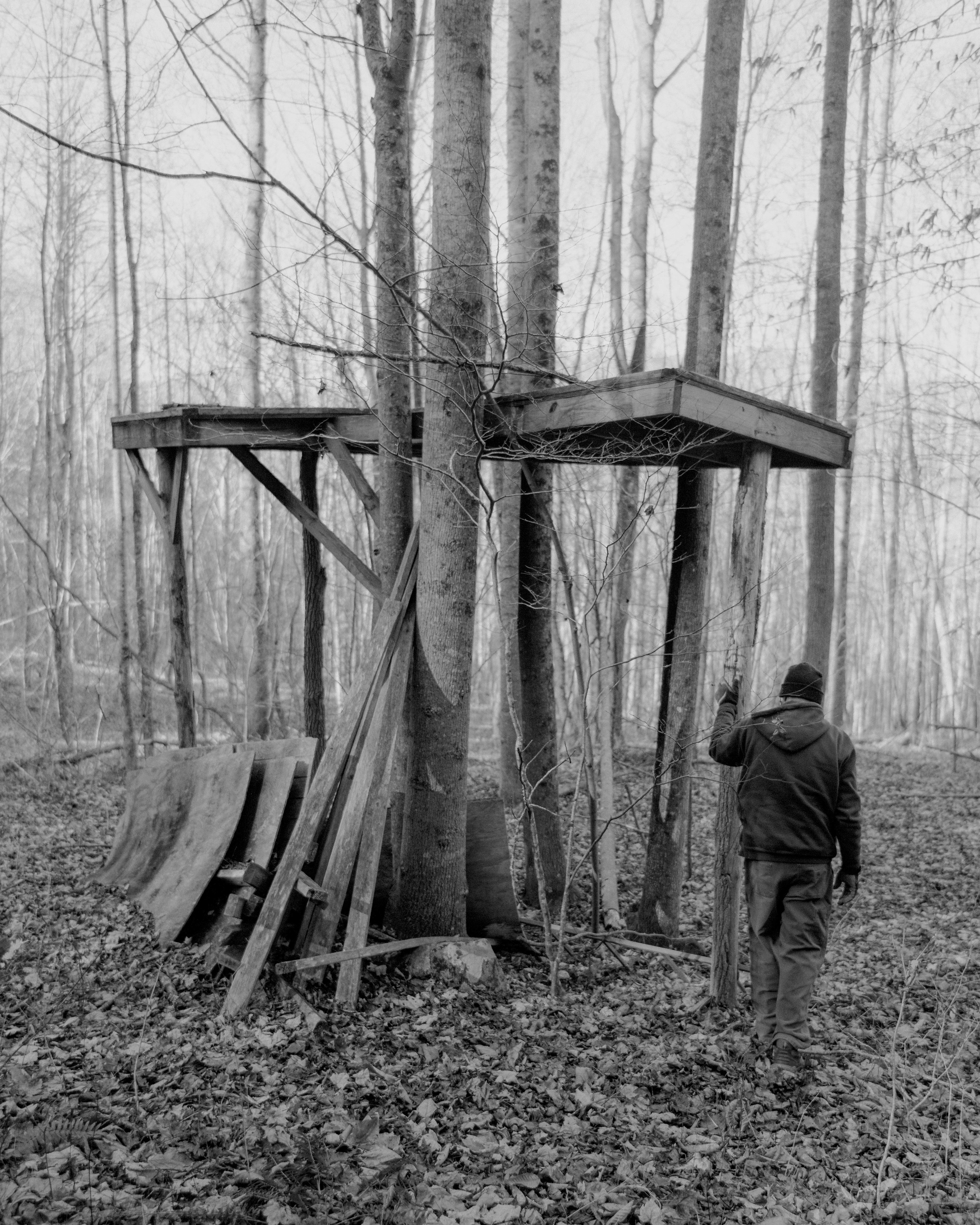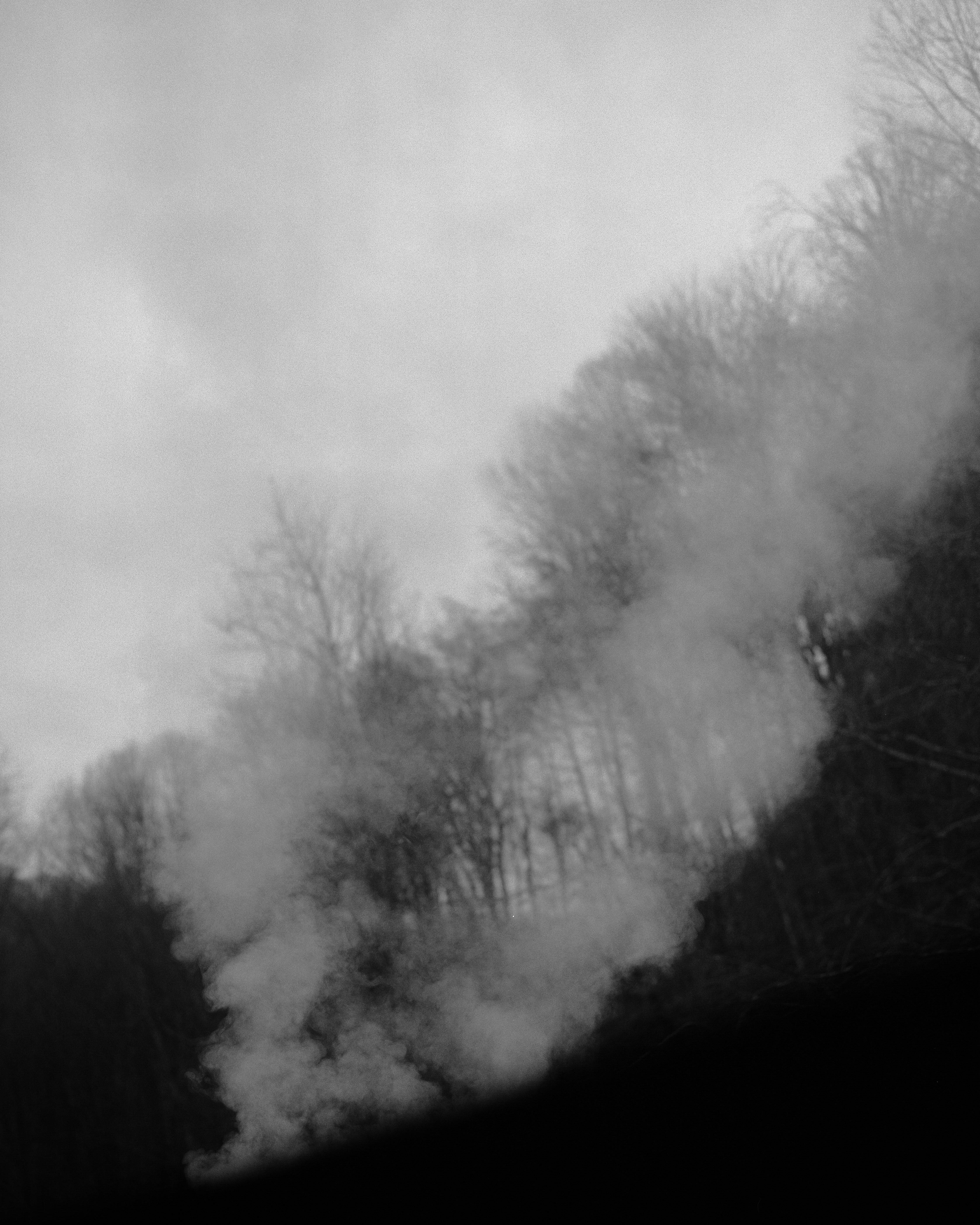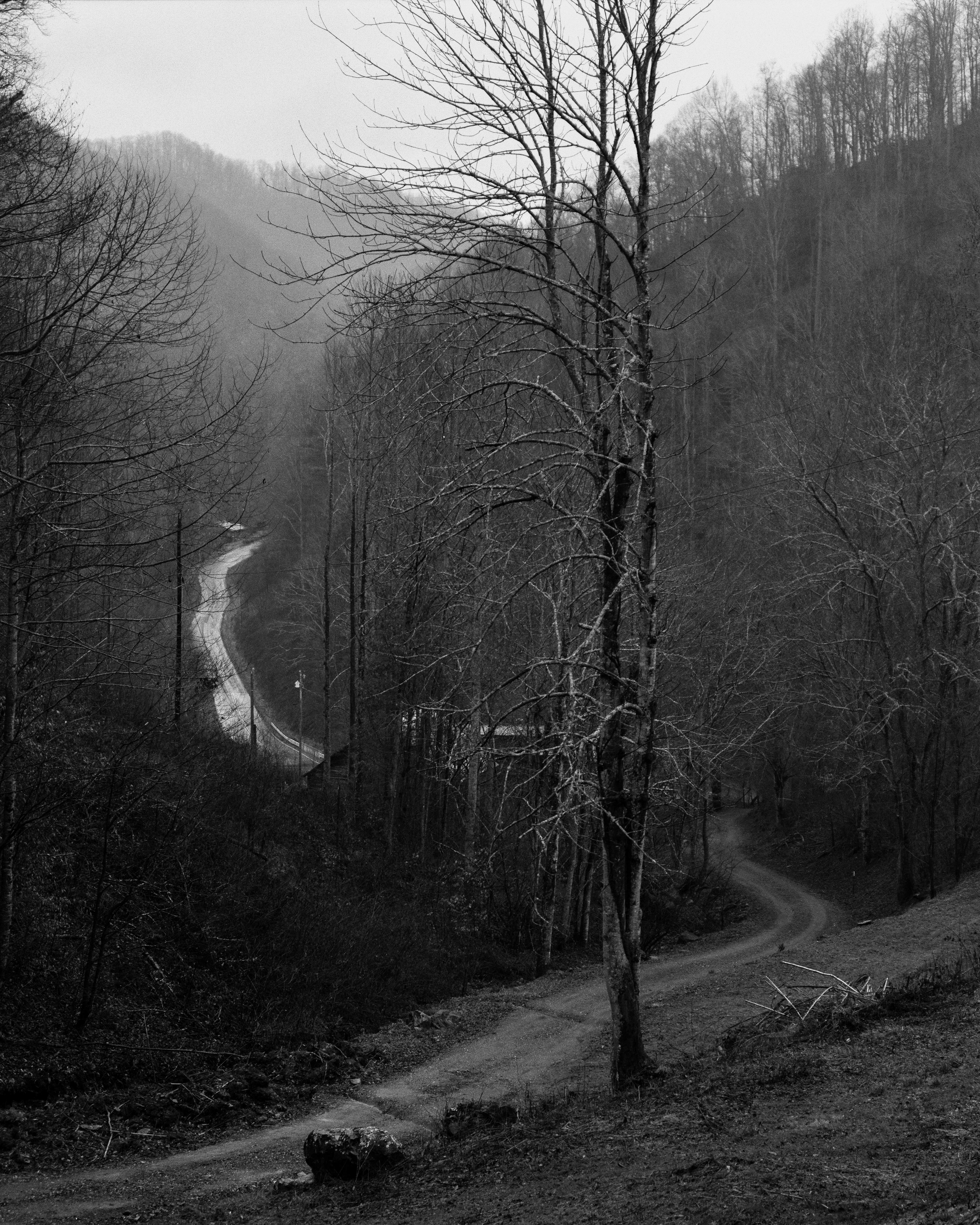 Colored by my memories of growing up in the mountains of Western North Carolina, Wolf Branch is focused on my shifting feelings about the region and my family's relationship with the land. The images throughout—mountains shrouded in mist, slivers of forest, detritus in the water and air—represent falling apart and finding rebirth in the splinters.