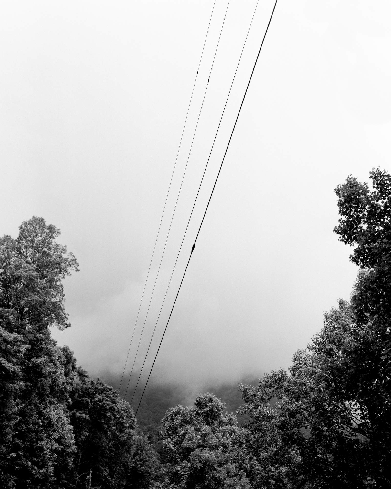 Colored by my memories of growing up in the mountains of Western North Carolina, Wolf Branch is focused on my shifting feelings about the region and my family's relationship with the land. The images throughout—mountains shrouded in mist, slivers of forest, detritus in the water and air—represent falling apart and finding rebirth in the splinters.